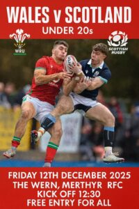 We are delighted to host The Welsh Rugby Union v Scottish Rugby #Under20s this lunchtime KO 1230. It’s free entry for all, the clubhouse and cabin open from midday.